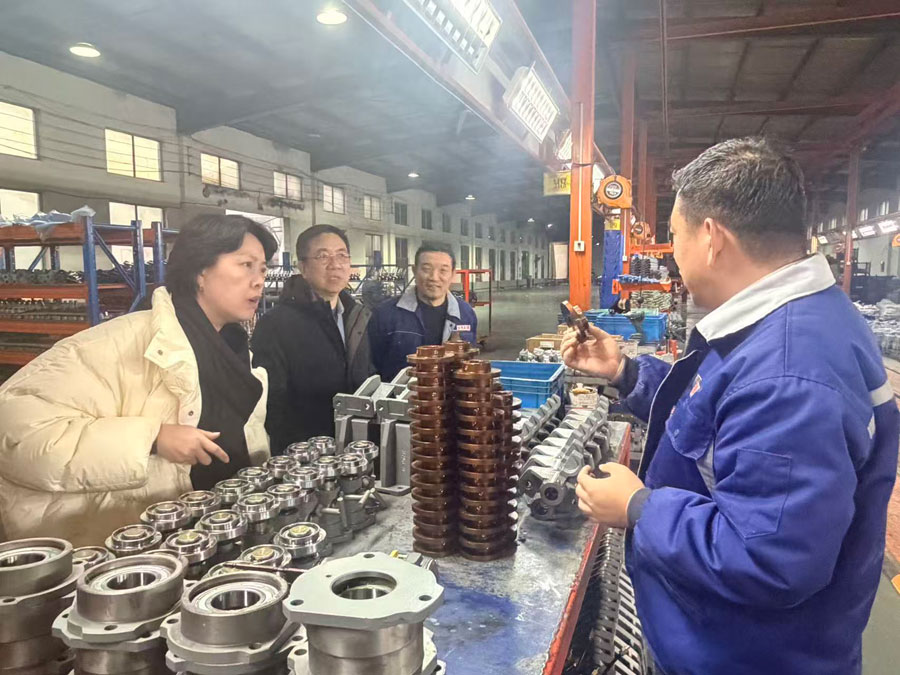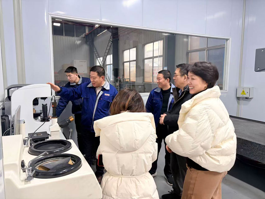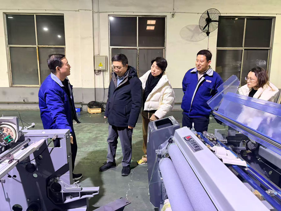 The inspection team toured key areas of Qingdao Huazun, including the production workshop and testing center. They observed the manufacturing processes of textile machinery, such as water-jet looms and air-jet looms, as well as related components. The delegation also witnessed the operation of precision testing equipment and gained detailed insights into the company’s technological achievements and practical experience in textile machinery R&D, production process optimization, and component machining accuracy control. In the component exhibition area, Qingdao Huazun technicians provided detailed explanations on the materials, performance, and application scenarios of various core components. Both sides engaged in in-depth discussions on topics such as the technological upgrading of filament weaving equipment and industry development trends.