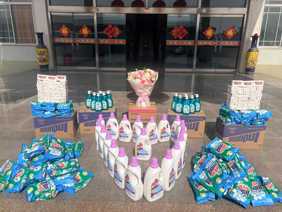 On the day of the event, a warm atmosphere filled the area in front of the company's office building. Practical daily necessities such as laundry detergent, hand soap, and tissues were neatly arranged, and bouquets of vibrant flowers stood out prominently, radiating joy and warmth. The company leaders extended festive greetings to all female employees and expressed heartfelt thanks and high respect for their dedication and contributions to the company's high-quality development over the past year.